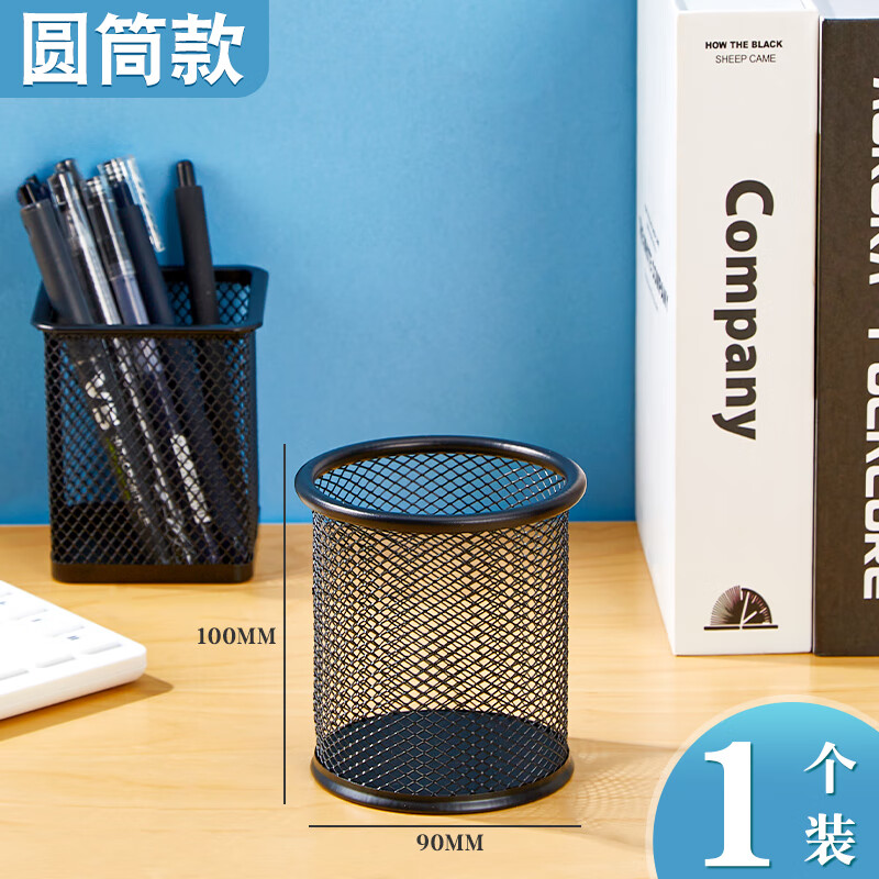商品名称:金属网格圆形笔筒 黑色 100*90mm 单位:个