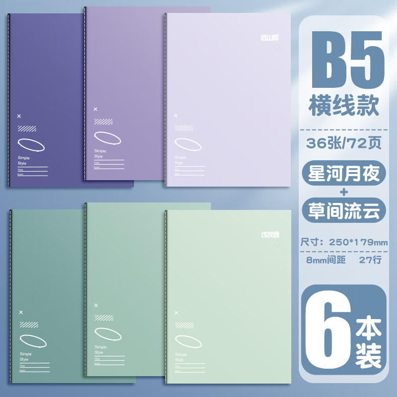 得力B5笔记本 横线 6本装(星河月夜+草间流云)