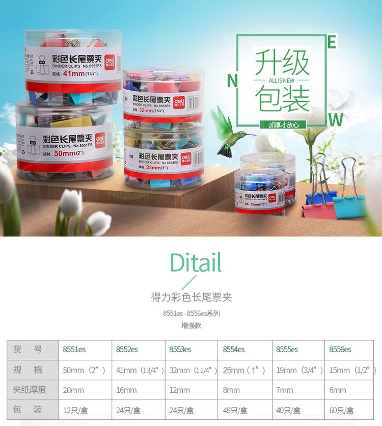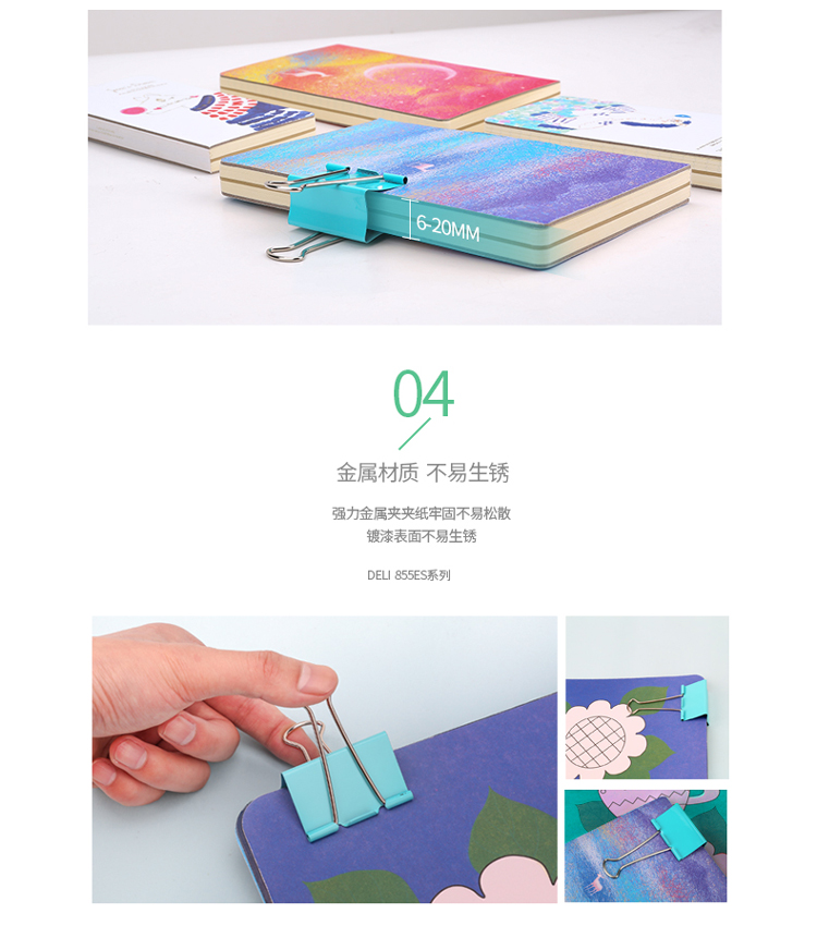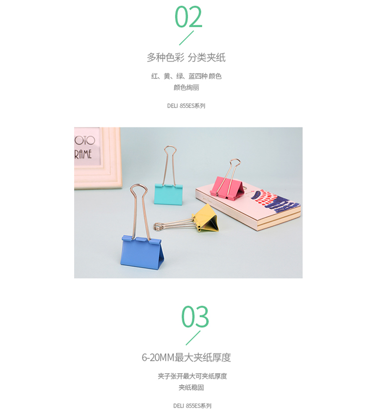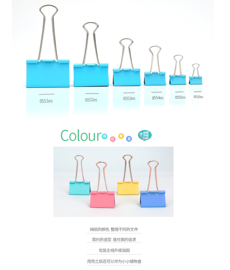 商品名称:得力(deli)24只41mm彩色长尾票夹 金属票据夹燕尾夹铁夹子 大号8552ES