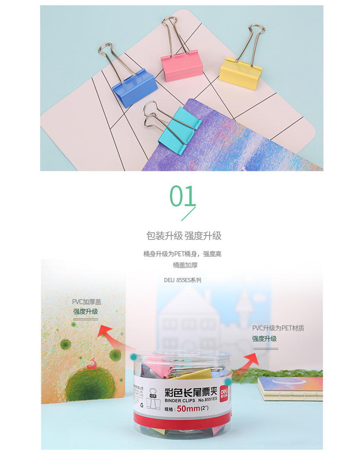 得力8552 彩色长尾票夹 2#24只/筒41mm大号