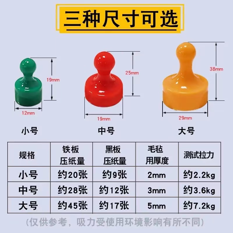 商品名称:彩色强力磁钉 十色 小号 50个/盒 单位:盒