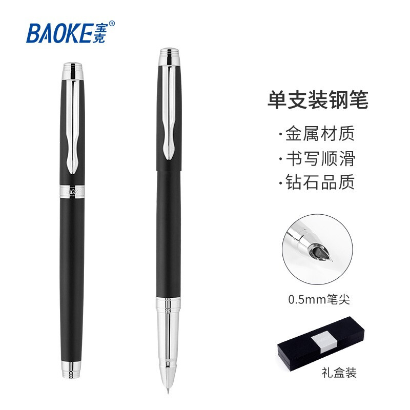 商品名称:宝克PC113商务黑色钢笔 金属笔杆 0.5mm暗尖 单位:支
