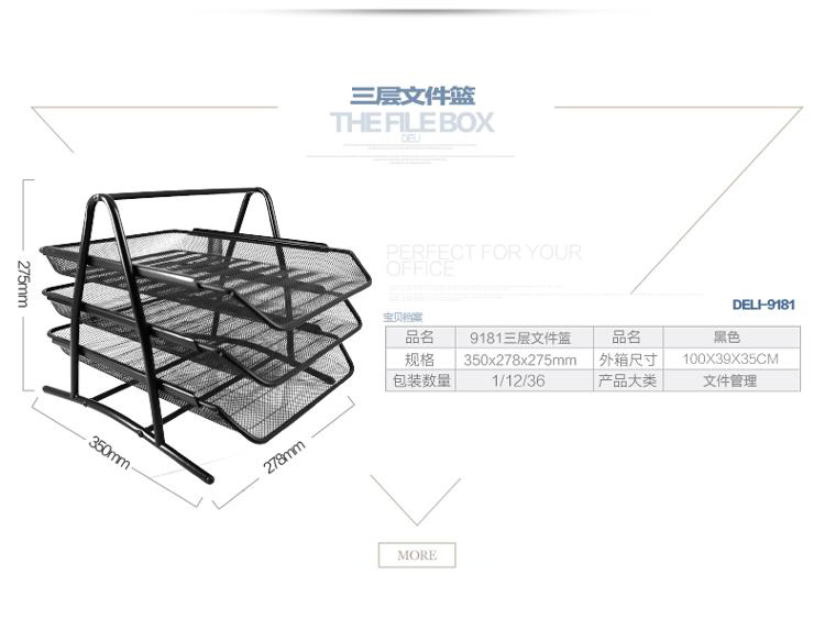 商品名称:得力(deli)9181 高品质商务三层金属文件盘(座)黑色 1只装