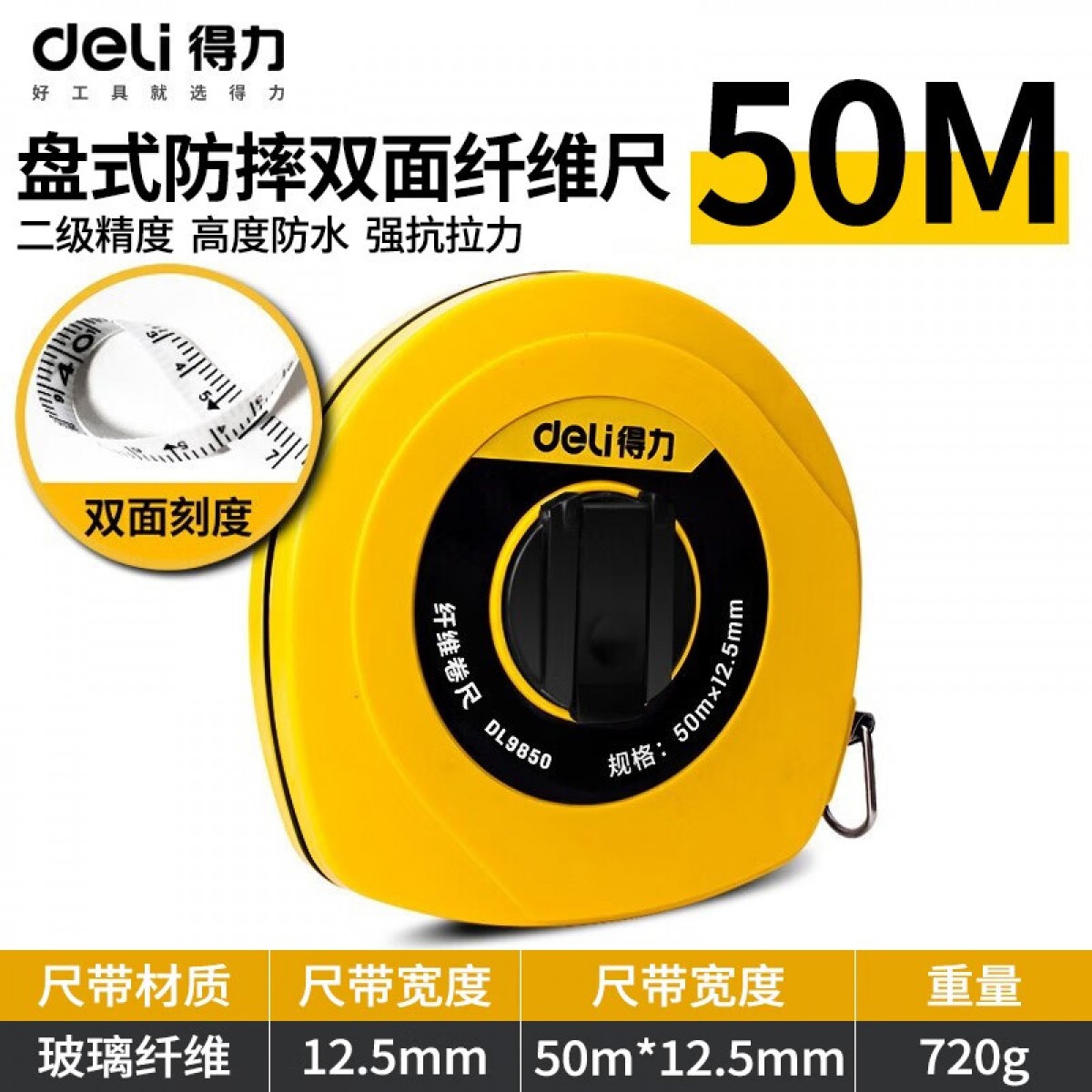 商品名称:得力DL9850盘式纤维尺 50米 单位:个