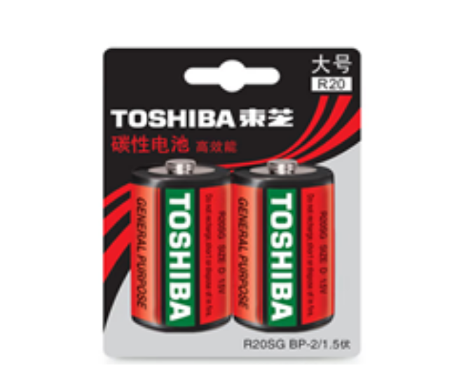 商品名称:东芝R20碳性电池 1.5v 2粒/卡 单位:卡