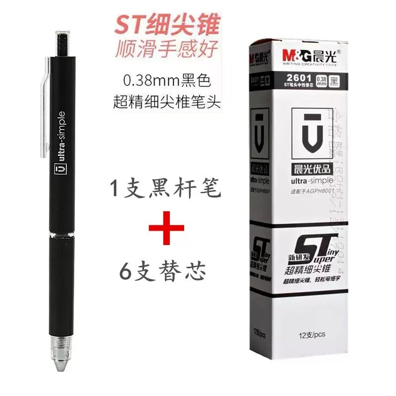 晨光按动笔 黑杆优品笔1支+6支笔芯 0.38mm