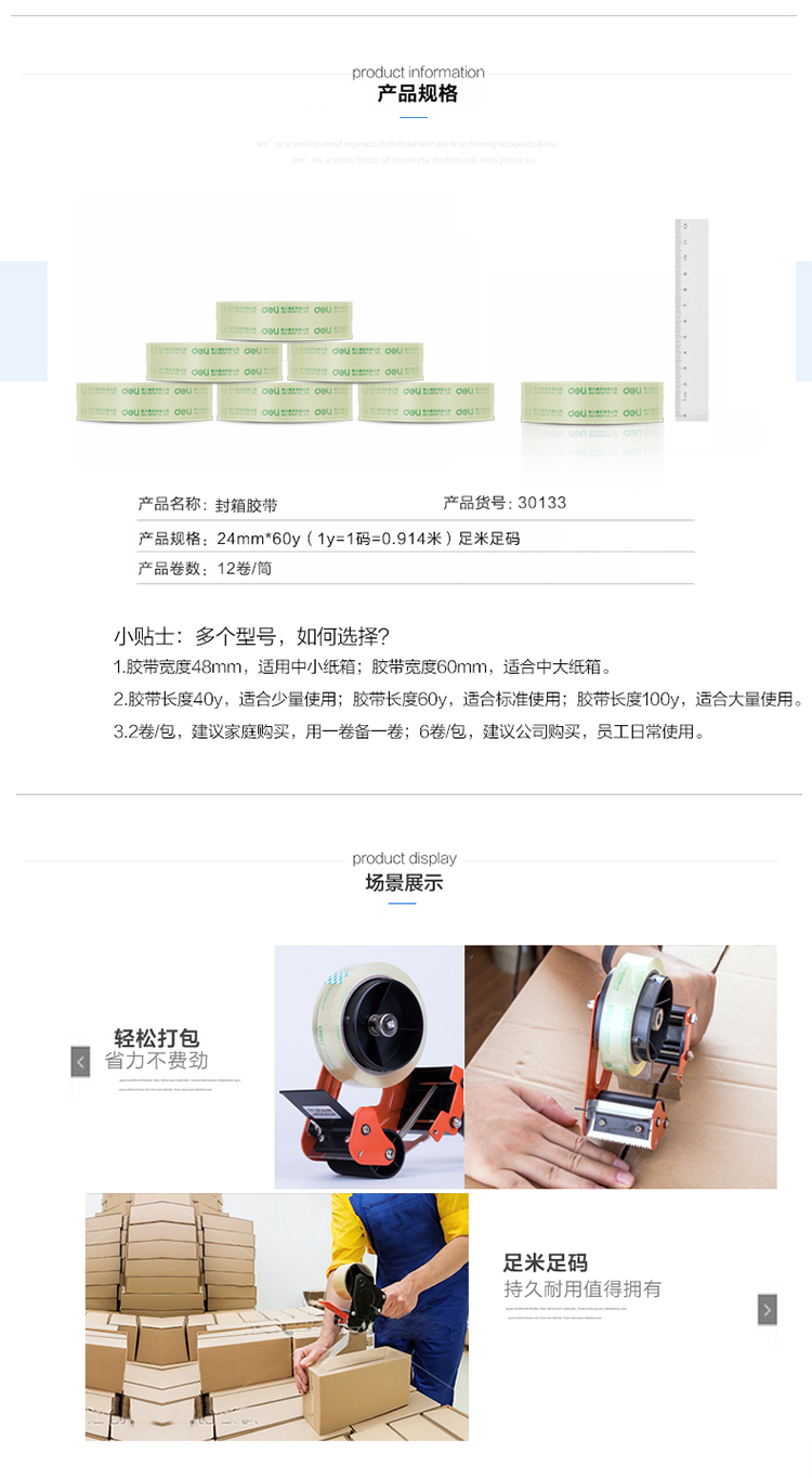 商品名称:得力(deli) 30133 筒装高透明度封箱胶带24mm*60y 12卷/筒