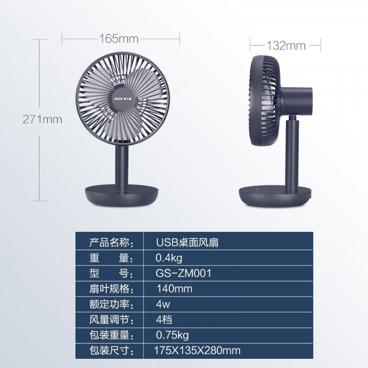 奥克斯GS-ZM001迷你小风扇 175X135X280mm