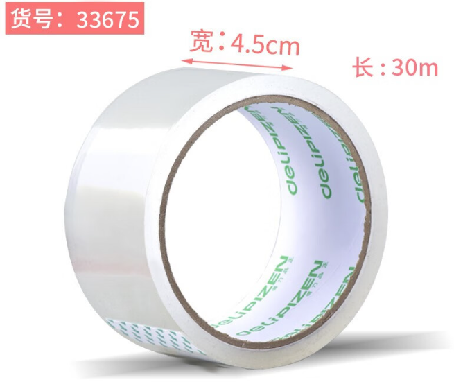 商品名称:得力33675透明胶带 45mm*30m 单30米/卷 5卷/组 单位:组