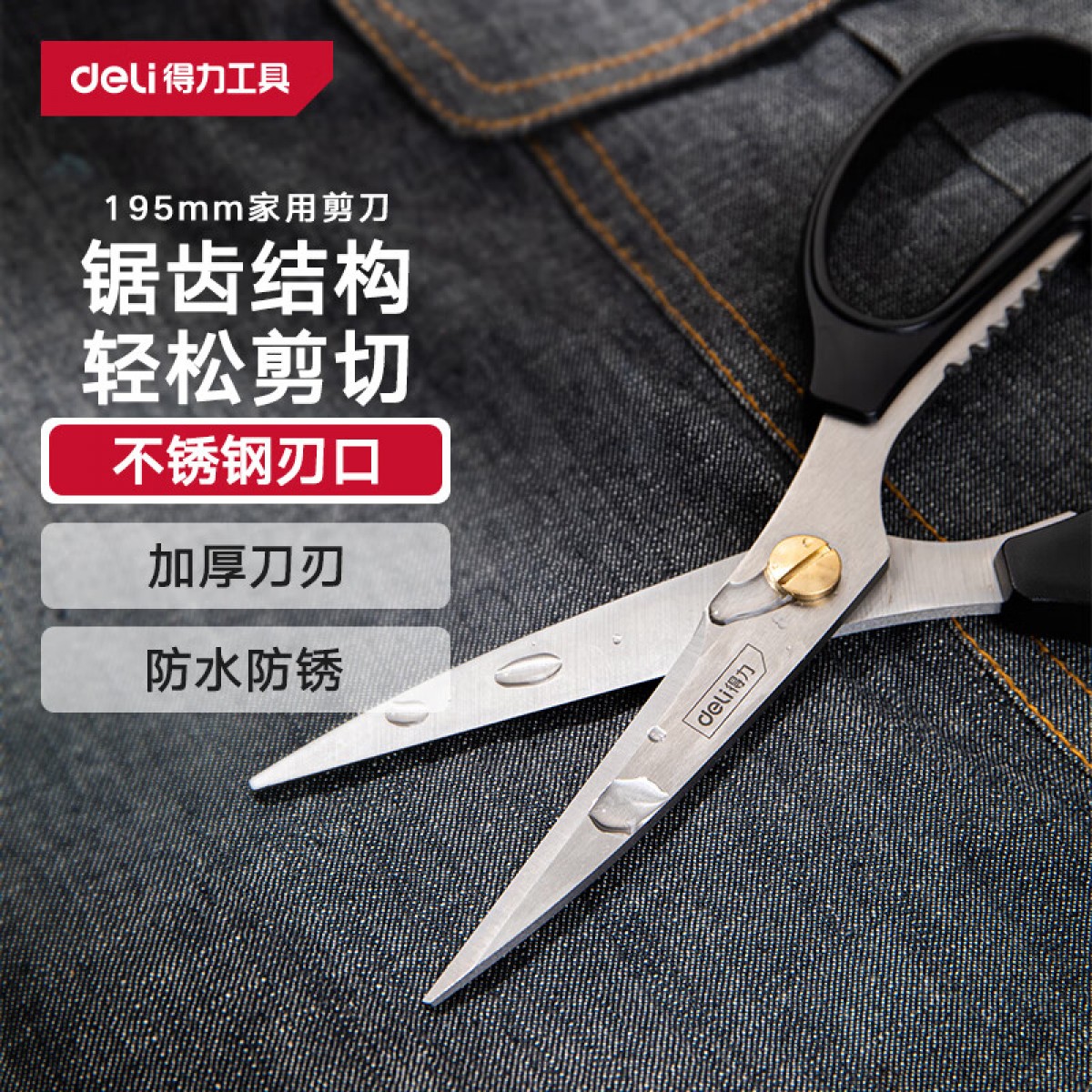 商品名称:得力DL2613强力剪刀7.5”/195mm 8把/盒 单位:把