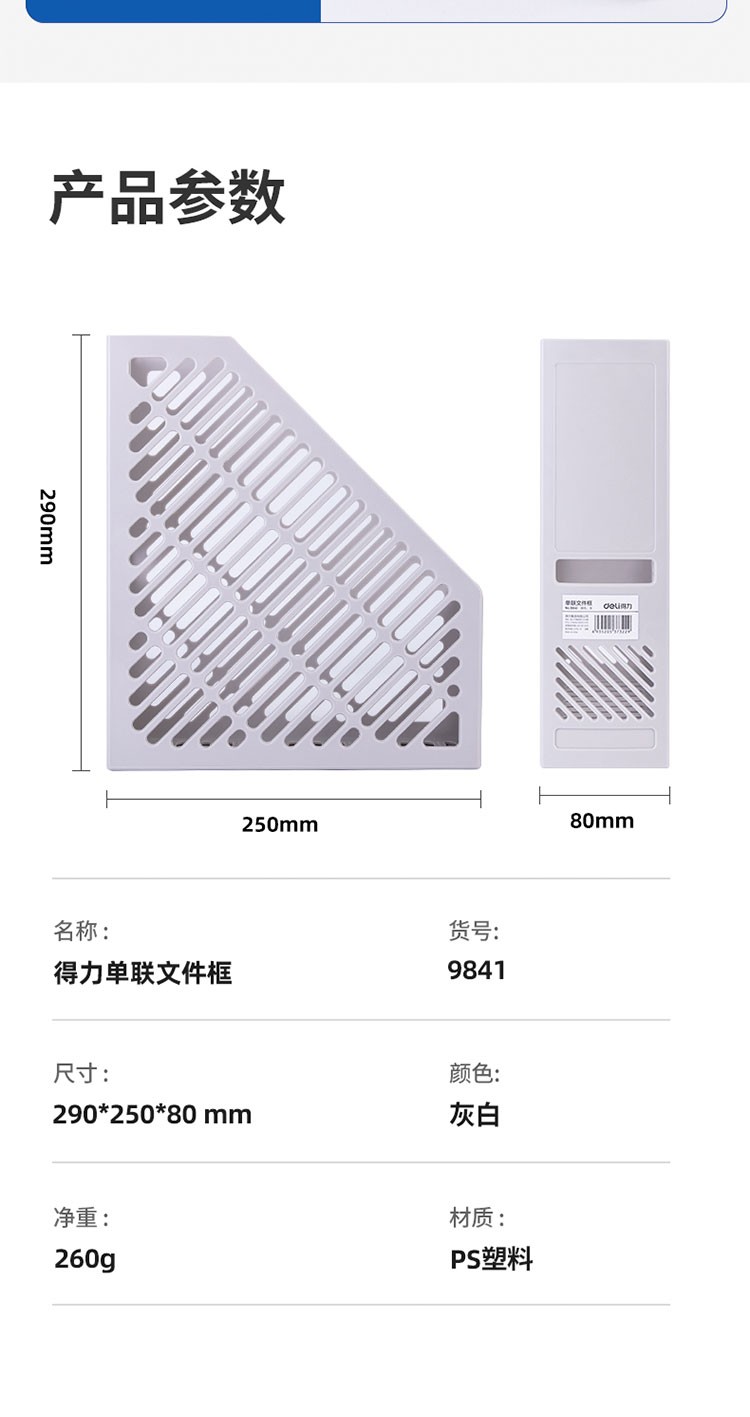 商品名称:得力9841单联文件框(灰白) 单位:个