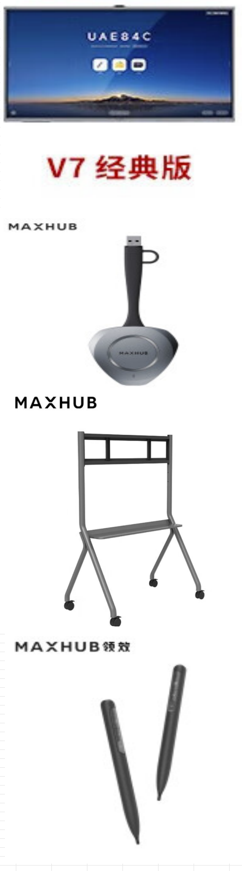商品名称:MAXHUB经典款 V7会议平板CG65MA 65寸 I5系统8+256G(含WT15无线传屏器/ST33移动支架/SP30智能笔) 单位:套