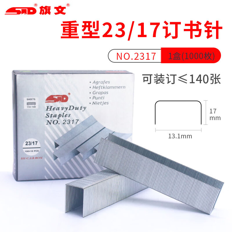 商品名称:旗文订书针23/17 1000枚 单位:盒
