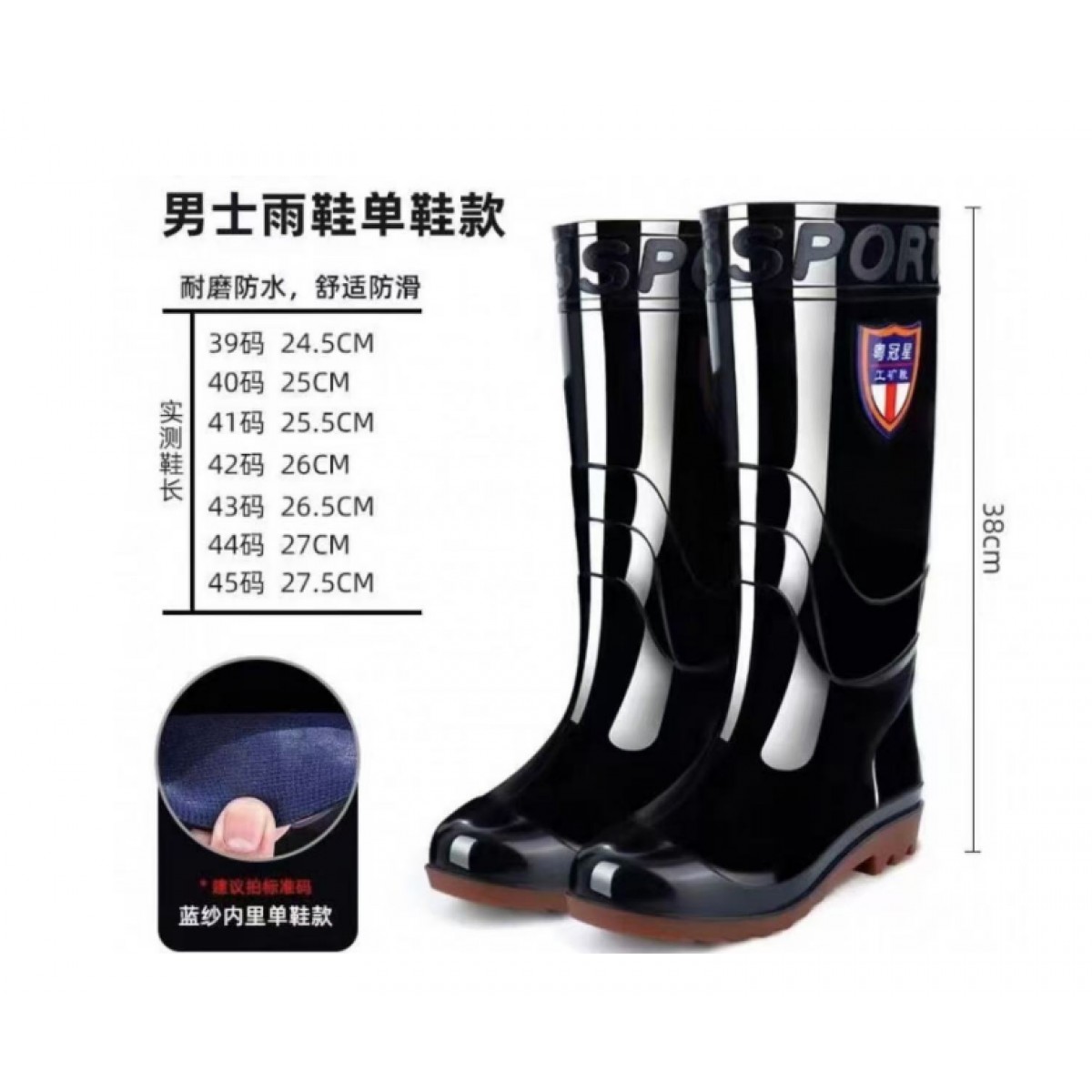 商品名称:粤冠星 长筒雨鞋 单位:双