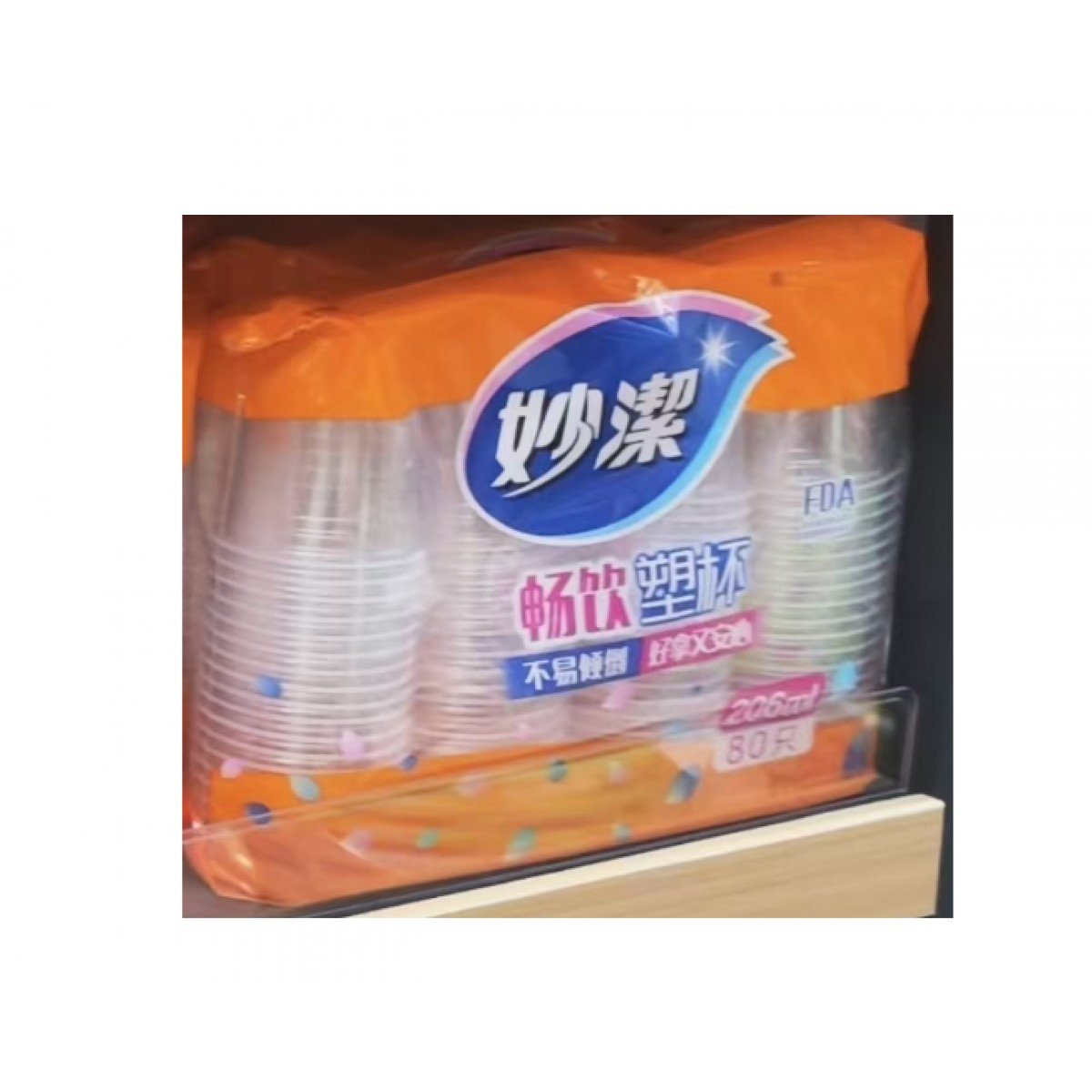 商品名称:妙洁一次性塑料杯 206ml 80只/包 24包/箱 单位:包