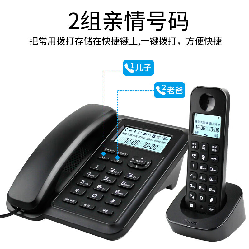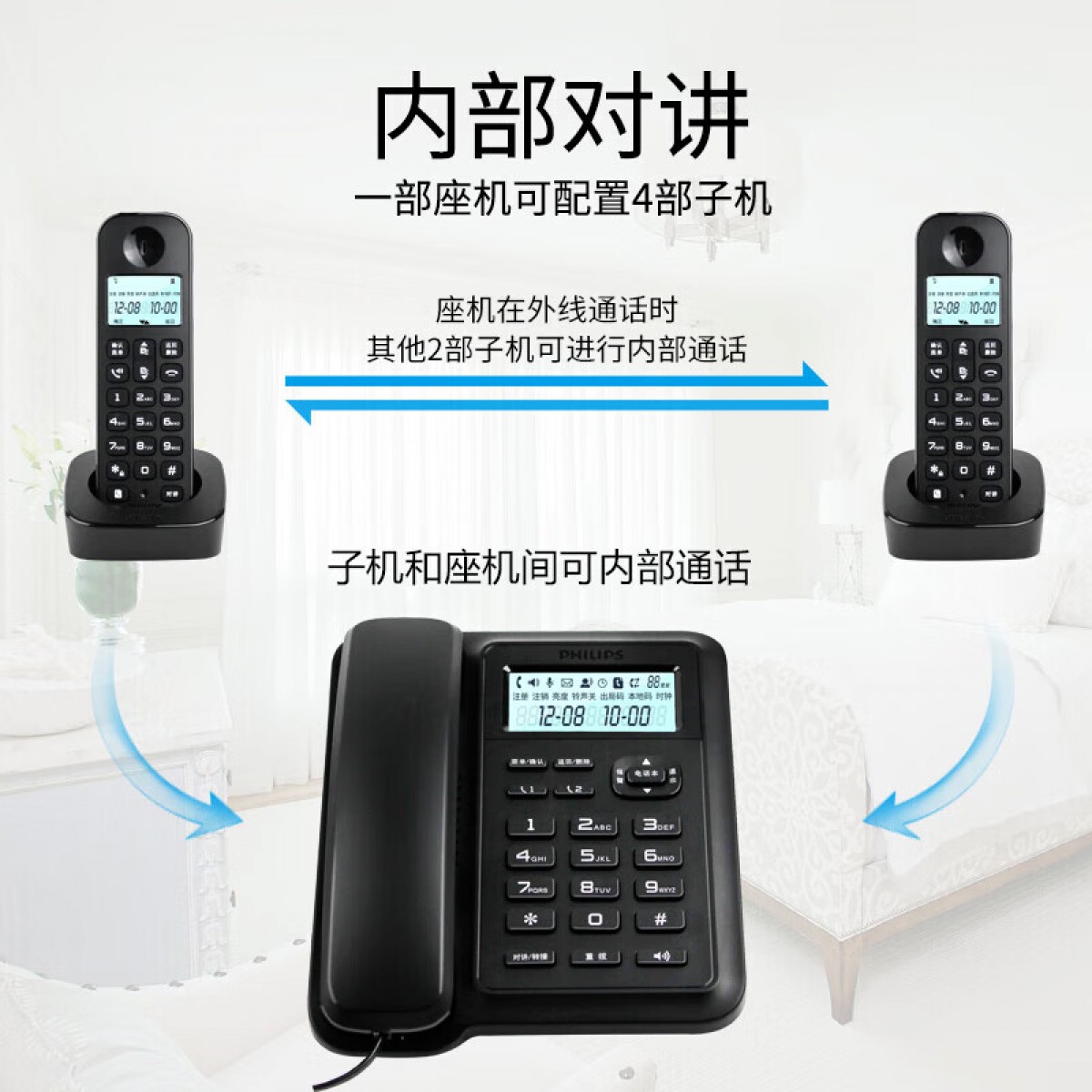 飞利浦DCTG167电话机 子母机 一拖二 黑色 单位:台