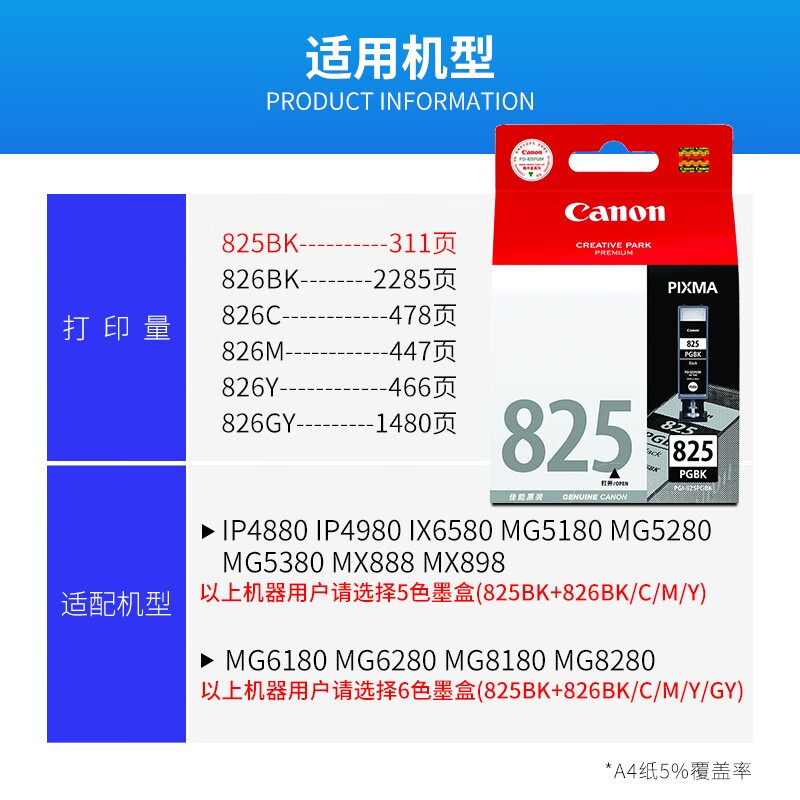 佳能原装825黑色墨盒 单位:支