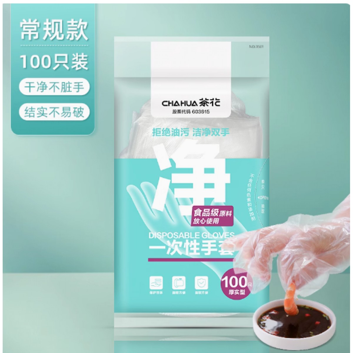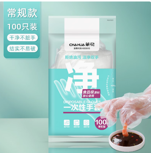 商品名称:茶花一次性手套 100只装 常规款 单位:包