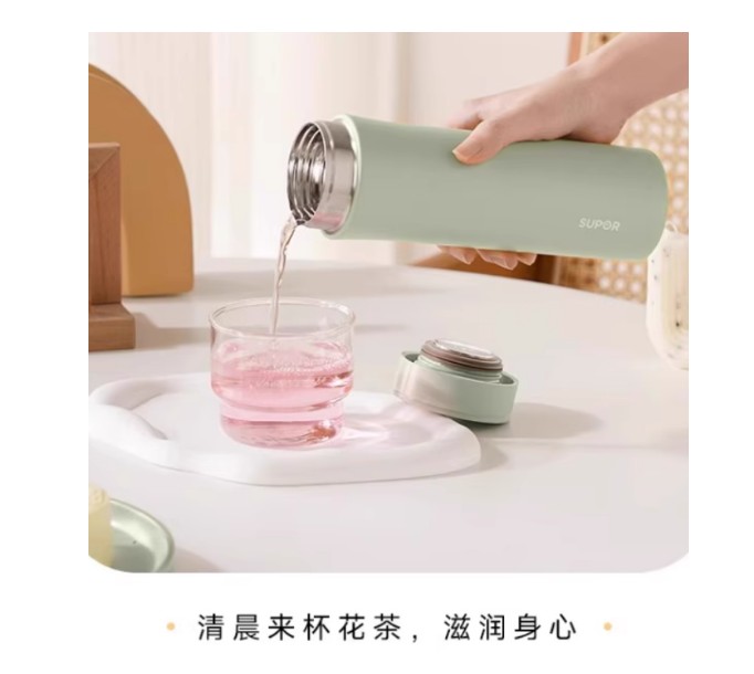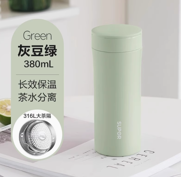 苏泊尔保温杯 灰豆绿 380ml 316L不锈钢+带茶滤