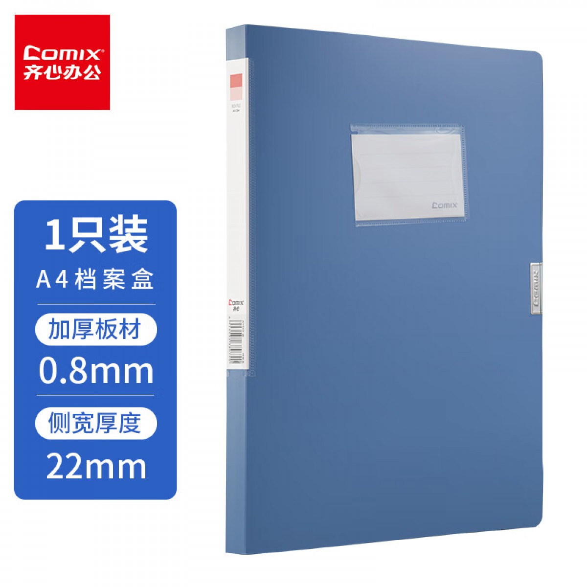 齐心A1242办公必备PP档案盒 A4 22mm 蓝色 单位:个