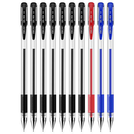 得力(deli)0.5mm半针管中性笔水笔签字笔套装 10支/盒(7黑+2蓝+1红)6610