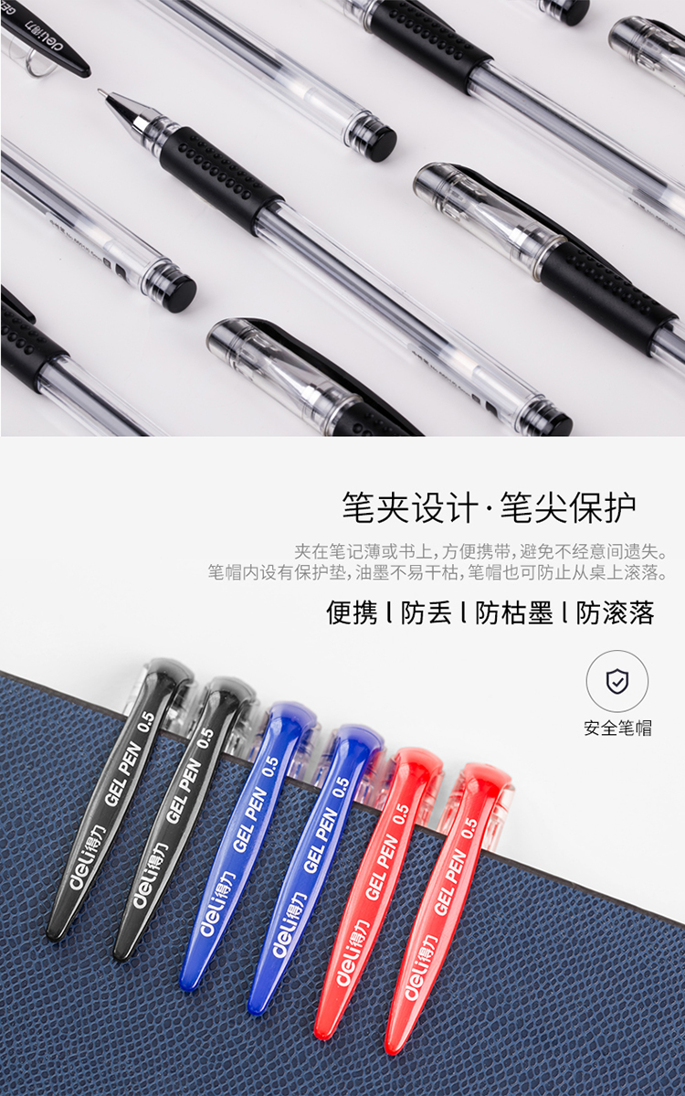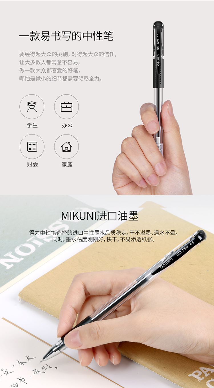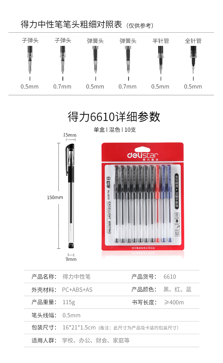 商品名称:得力(deli)0.5mm半针管中性笔水笔签字笔套装 10支/盒(7黑+2蓝+1红)6610