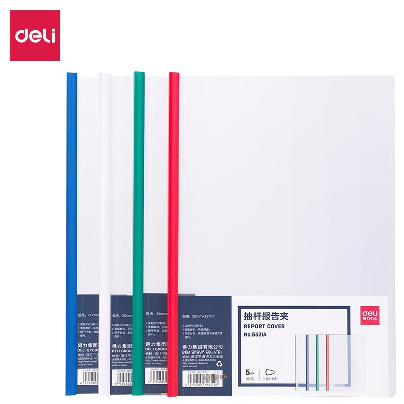 商品名称:得力5531A 抽杆报告夹 混 5个/包 单位:包