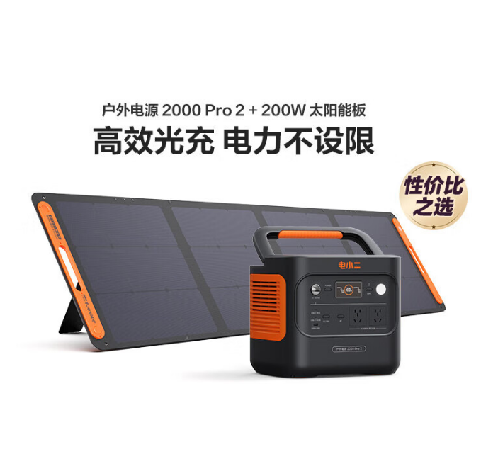 电小二 快充户外电源2200W大功率大容量220V移动电源2000Pro2带200W太阳能板
