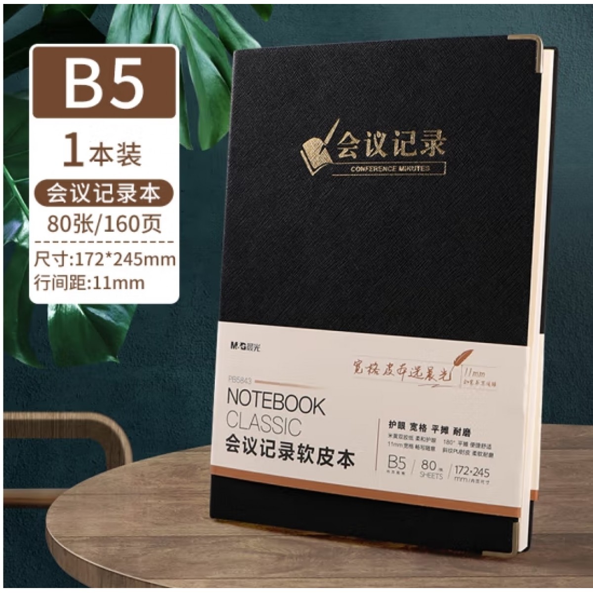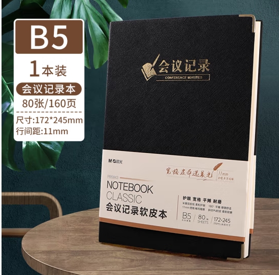 商品名称:晨光PB5843 PU皮面会议记录本B5/80张 (黑色)单位:本