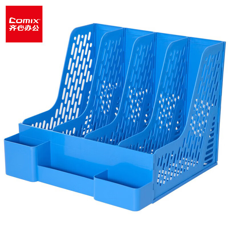 齐心B2034多功能资料架 四格 蓝色