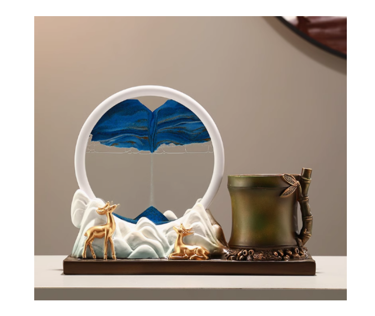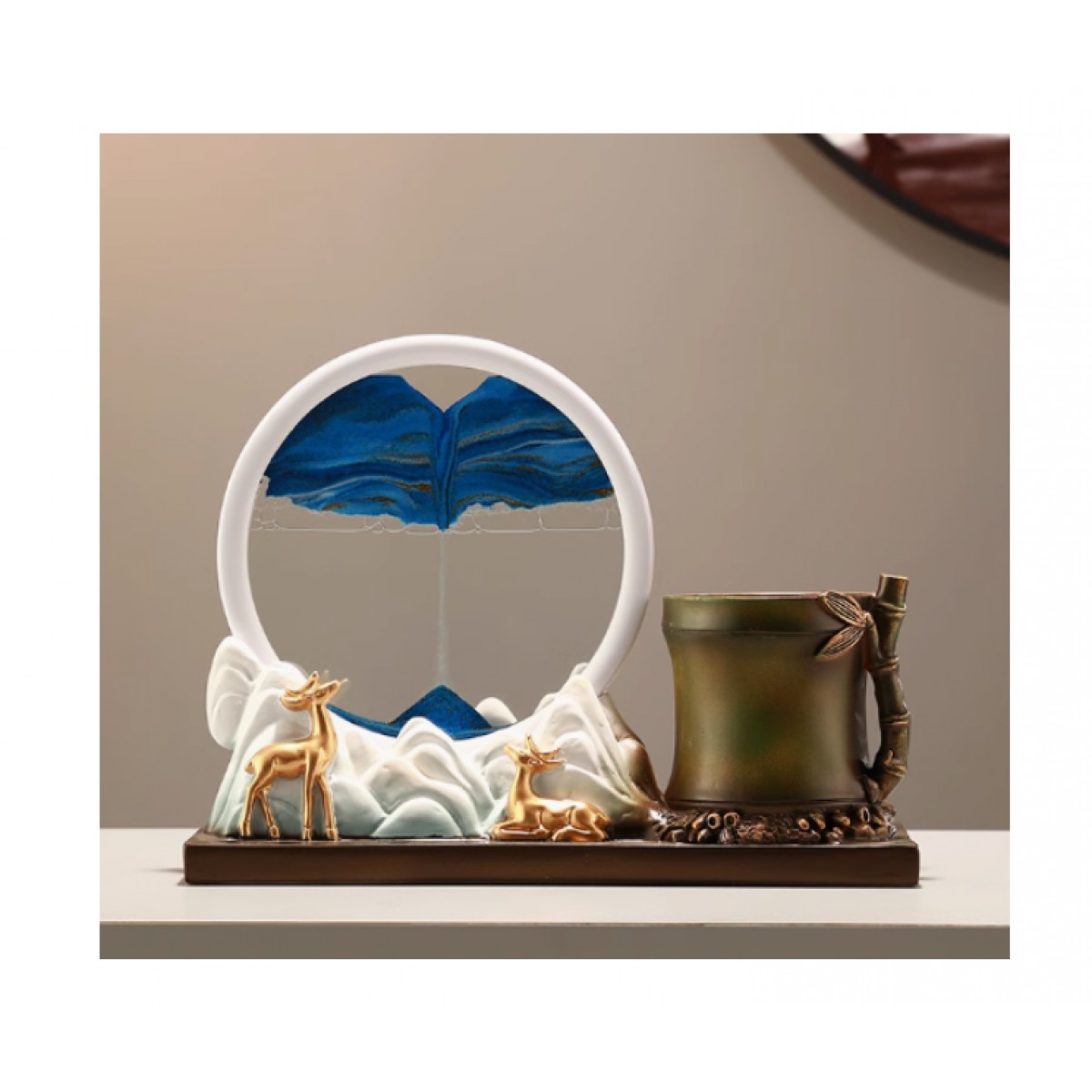 沛纳丽流沙画沙漏笔筒 流沙【假山蓝】 笔筒630 蓝沙白框