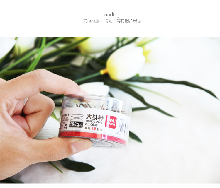 - 商品名称:得力(deli)0039 3#大头针100克/筒