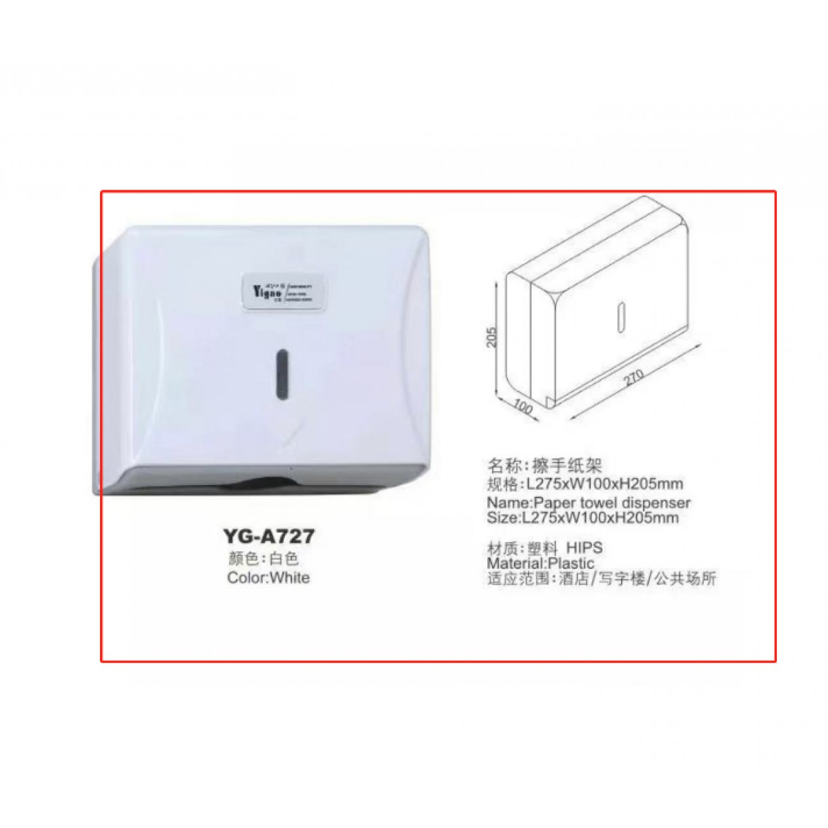 商品名称:亿高YG-A727擦手纸盒 白色 单位:个