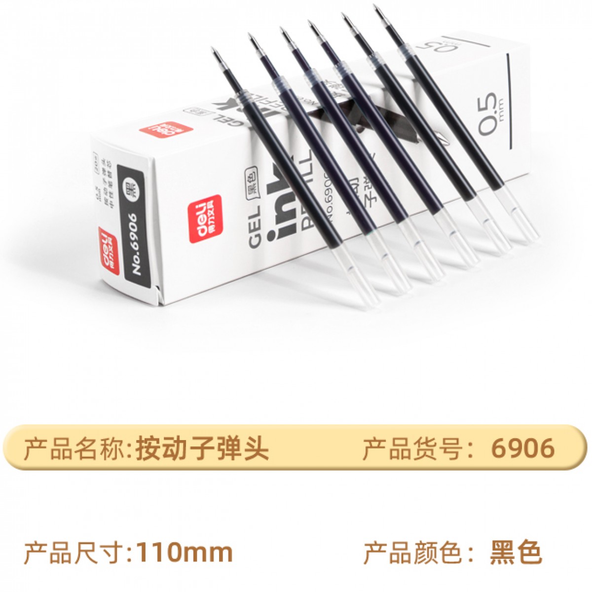 商品名称:得力6906按动签字笔替芯0.5mm 黑色 单位:支
