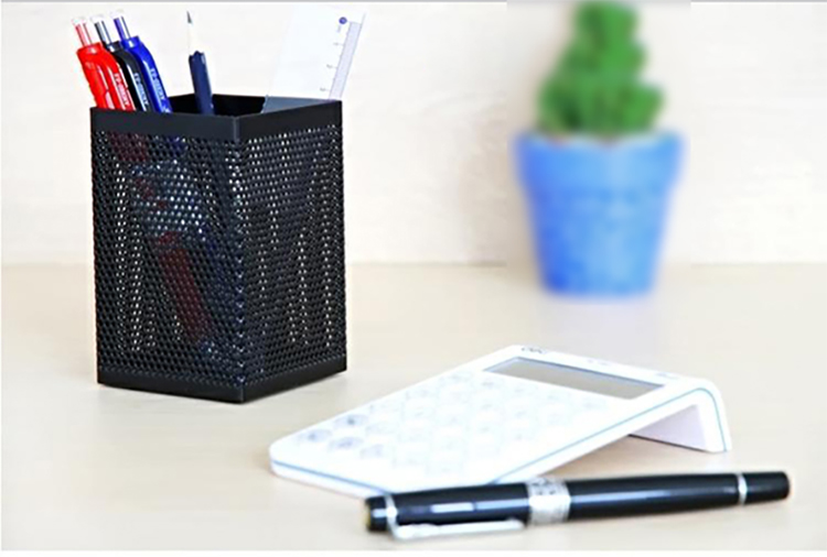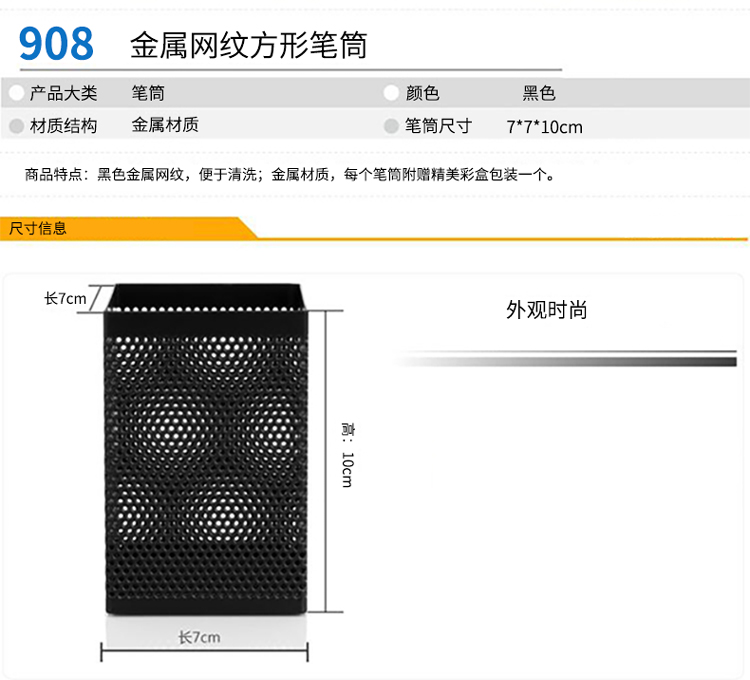 商品名称:得力(deli)金属网纹方形笔筒 办公桌面收纳盒 黑色908