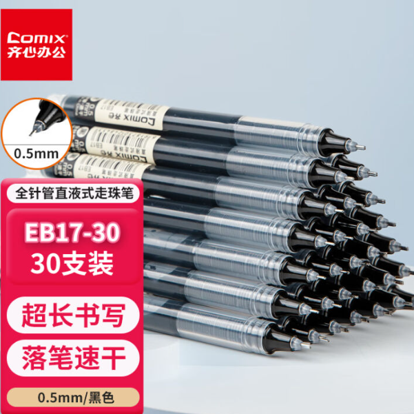 商品名称:齐心EB17-30液式走珠笔 0.5mm黑30支装 单位:盒