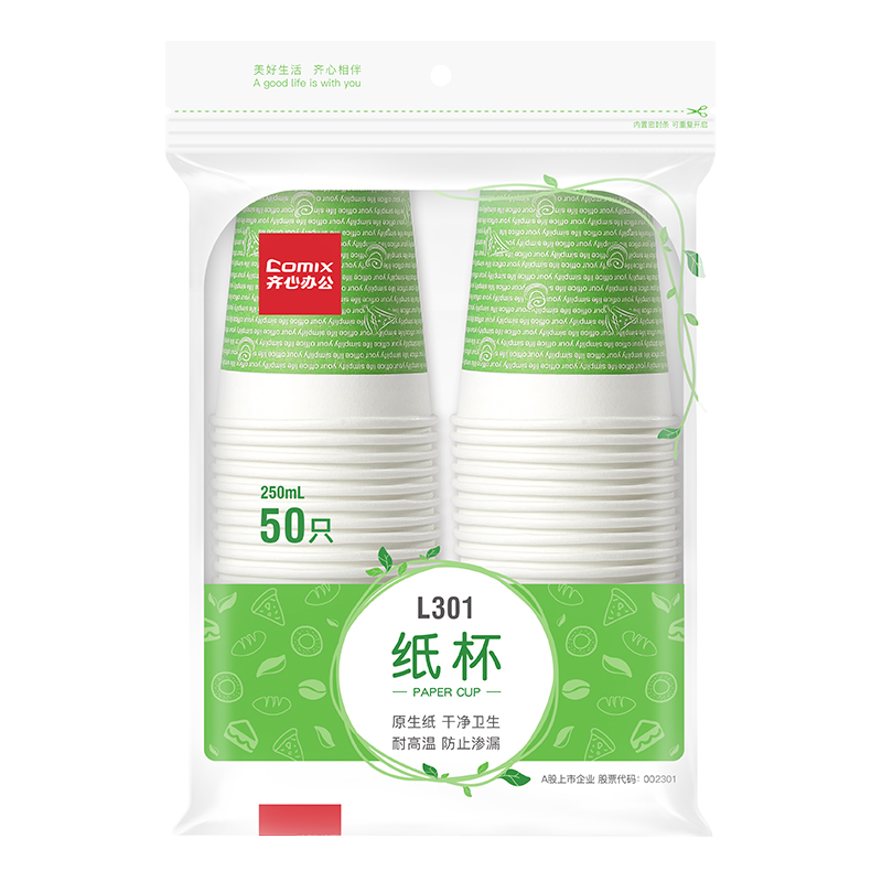 商品名称:齐心L301纸杯250ml 50个/包 单位:包