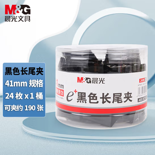 商品名称:晨光ABS92733长尾夹Eplus系列41mm 24只/筒 黑色(单位:筒)