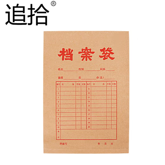 商品名称:追拾牛皮纸档案袋 340*240*28mm 50个/包 单位:包