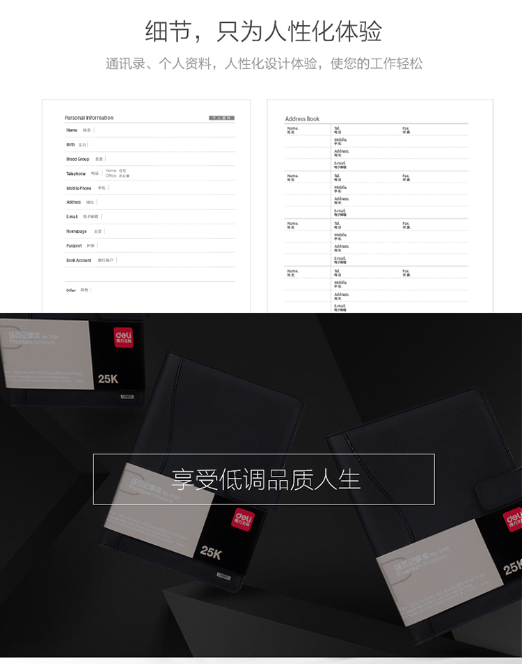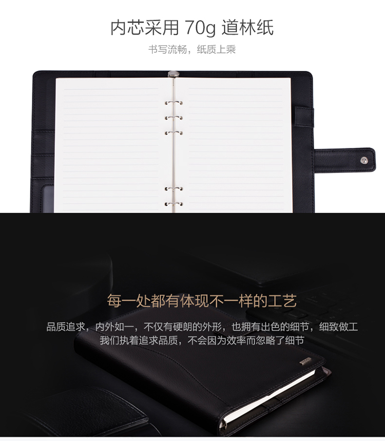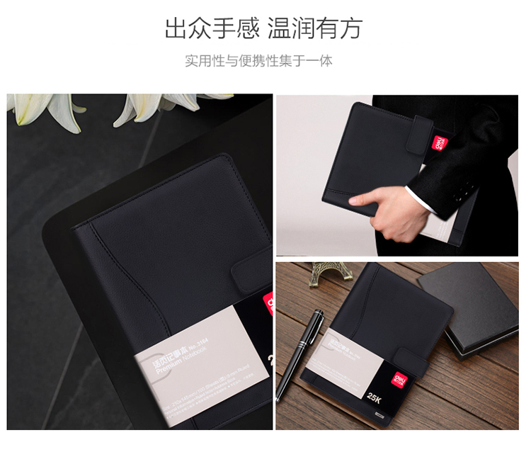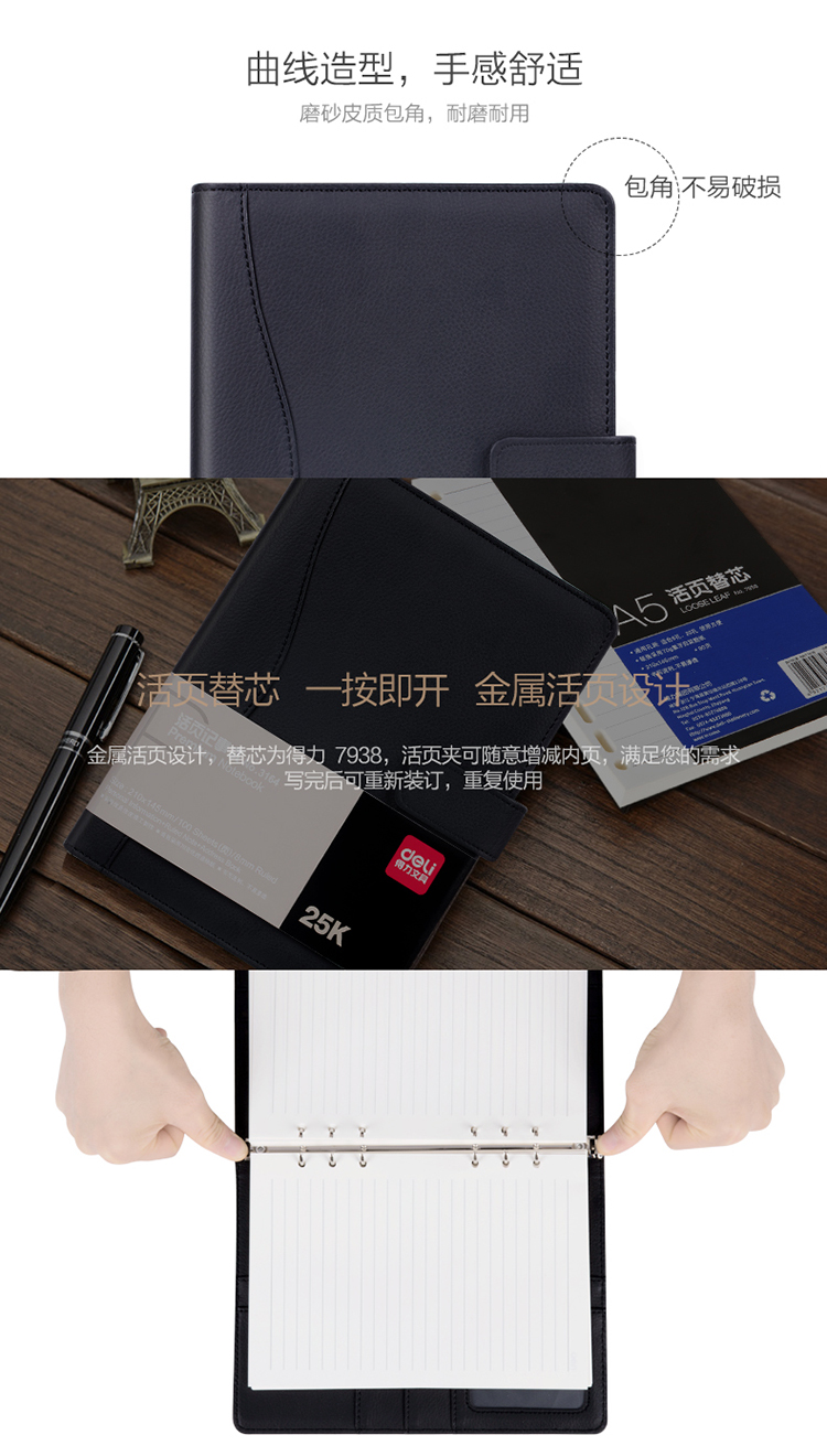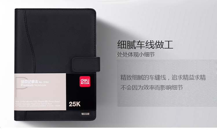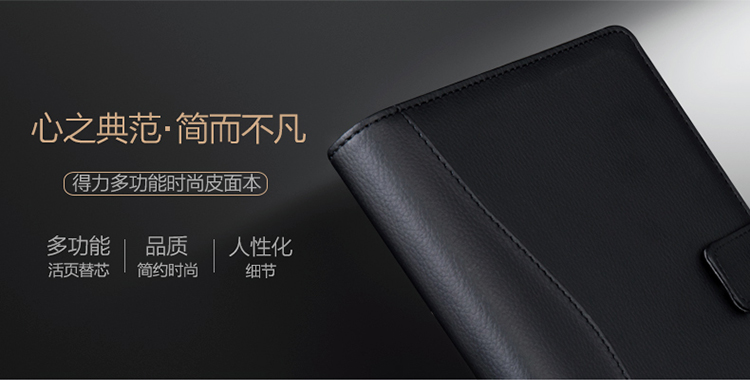 得力(deli)3164 25K/100页6孔商务活页皮面本/办公记事本笔记本子 雅士黑