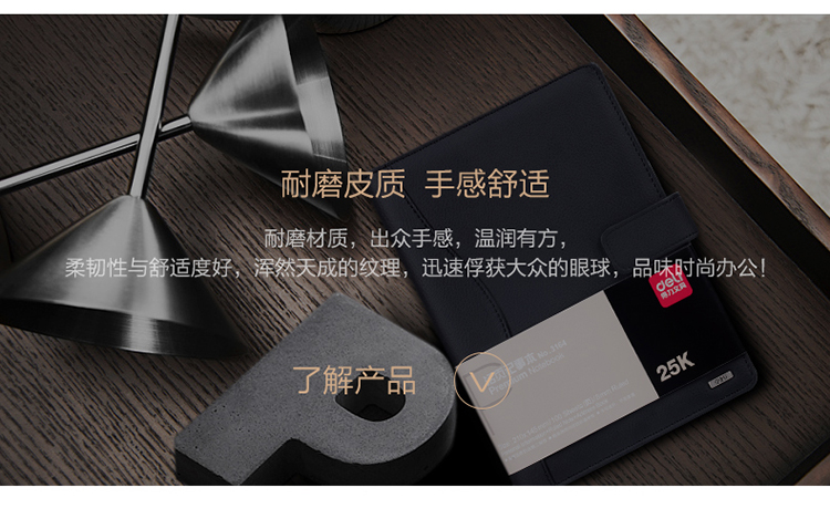 商品名称:得力(deli)3164 25K/100页6孔商务活页皮面本/办公记事本笔记本子 雅士黑