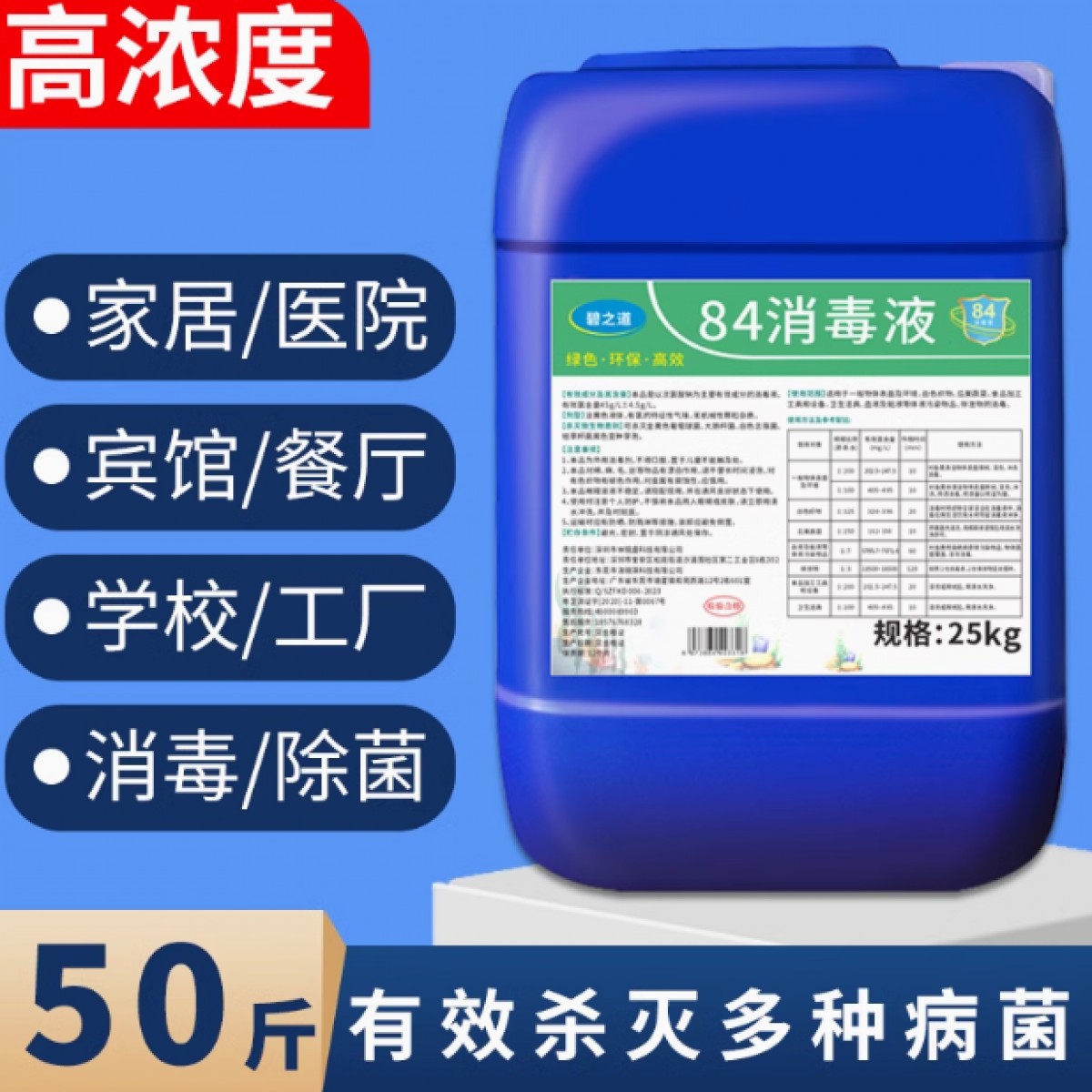商品名称:碧之道84消毒液 50斤大桶装 单位:桶
