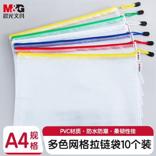 商品名称:晨光 M&G 普惠型网格拉链袋 ADMN4282 A4 10个/包 单位:个