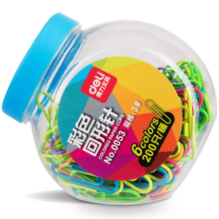 得力(deli) 0053 3#镀镍时尚彩色防锈曲别针/回形针 200枚/筒
