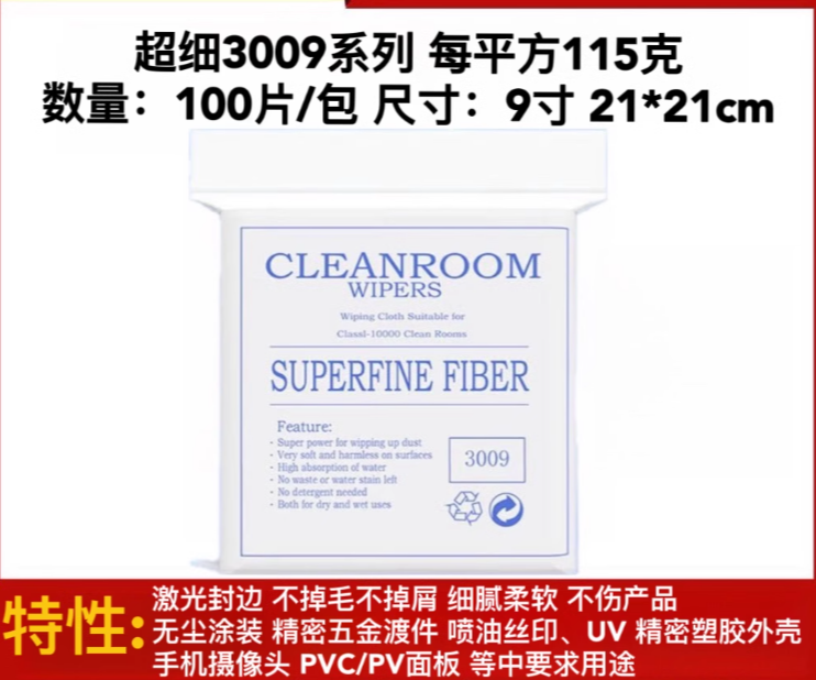 商品名称:无尘擦拭布 超细3009 9寸 21*21cm 100片/包 单位:包