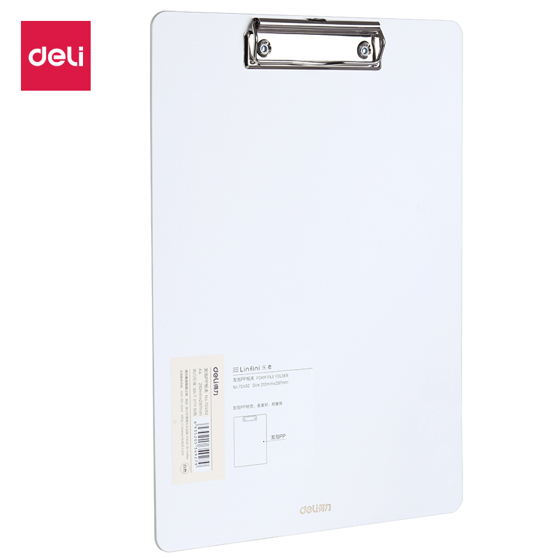 商品名称:得力72492板夹 白色 24个/包 单位:个