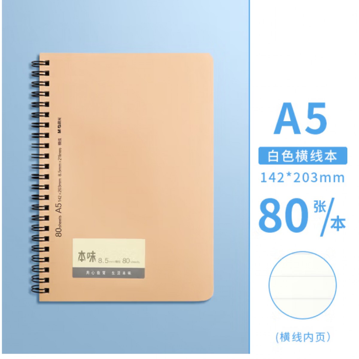 商品名称:晨光XA5814线圈本A5 80页 单位:本