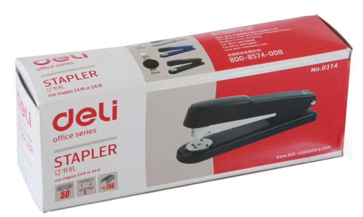 得力0314 产品规格:158*41*59mm;产品包装:160*45*62mm;重量:0.297kg(含包装);书钉种类:24/6或24/8;书钉数量:≤150pcs;钉纸厚度:2-50张80g复印纸; | ![]() |
