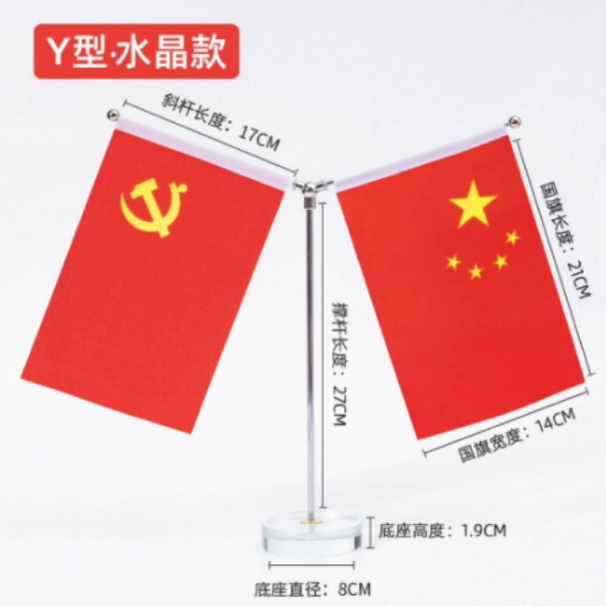 商品名称:新晴办公桌旗Y型水晶底座国旗桌面摆件 单位:个