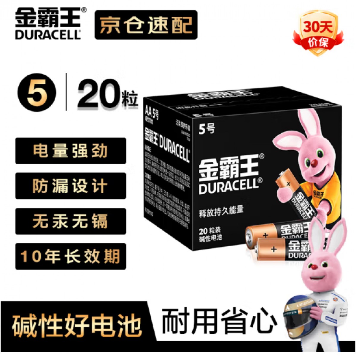商品名称:金霸王5号碱性干电池 20粒装 单位:盒